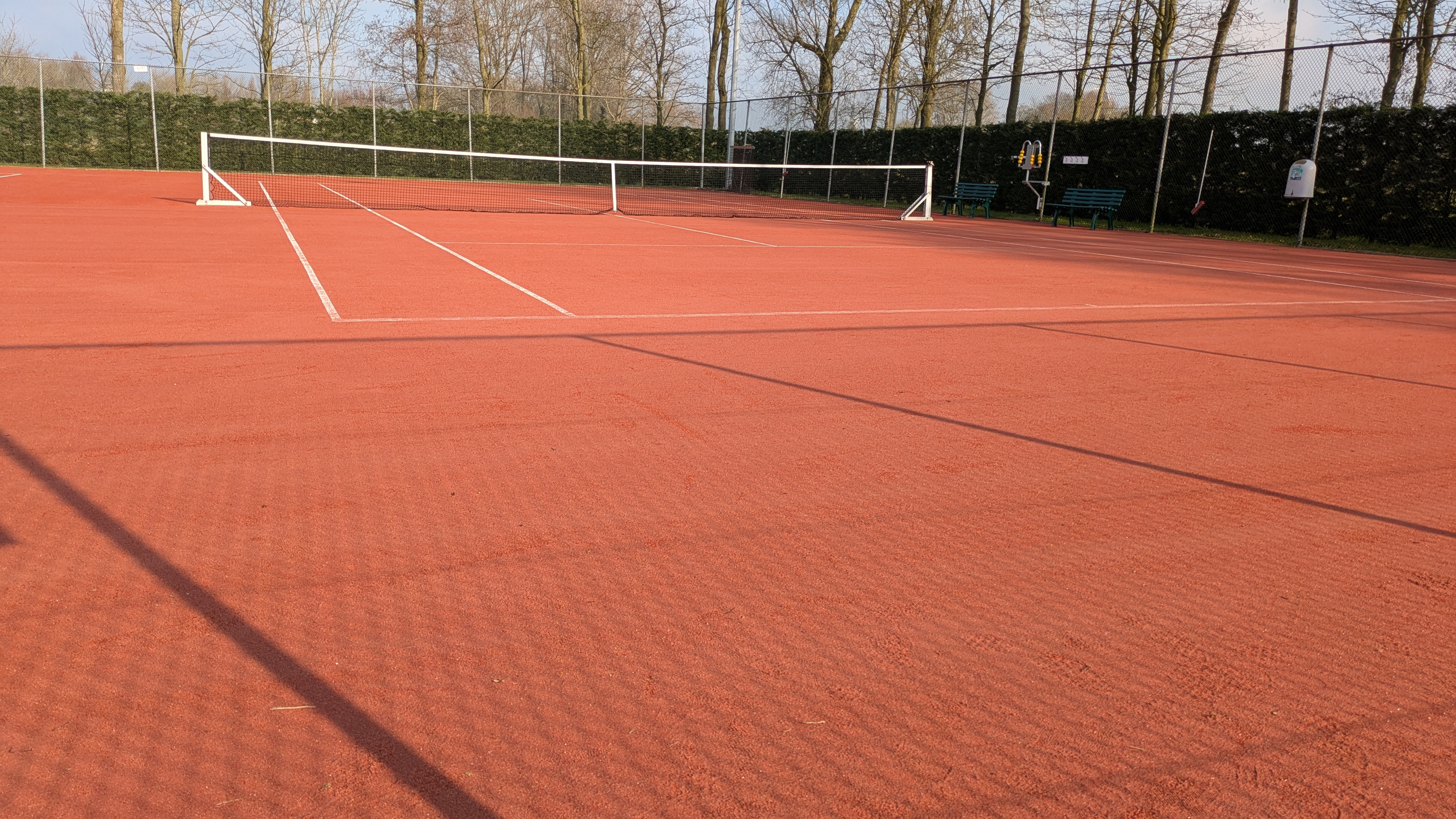 Vanuit het gezellige clubhuis kijk je uit over de drie 'advantage redcourt' (tennisrood) banen en bij goed weer is er op het grote terras altijd een plekje in de zon of in de schaduw te vinden.
